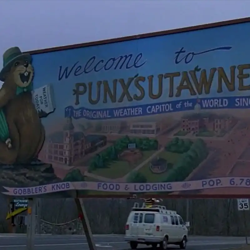 phil becomes the groundhog, larry is a proto-phil, and phil and rita trade words on the way from blairsville, pa to algonquin, il, to woodstock, il